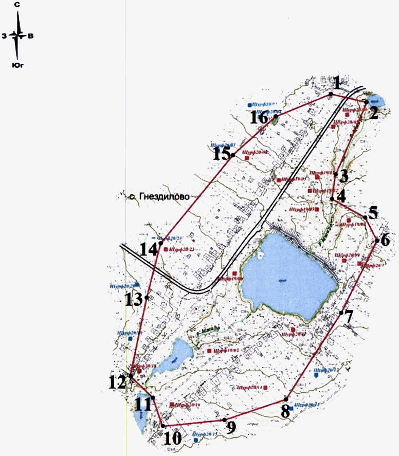 - границы территории объекта культурного наследия (памятника истории и культуры) народов Российской Федерации федерального значения "Селище Гнездилово 1", рубеж XI - XII - XVII вв.;