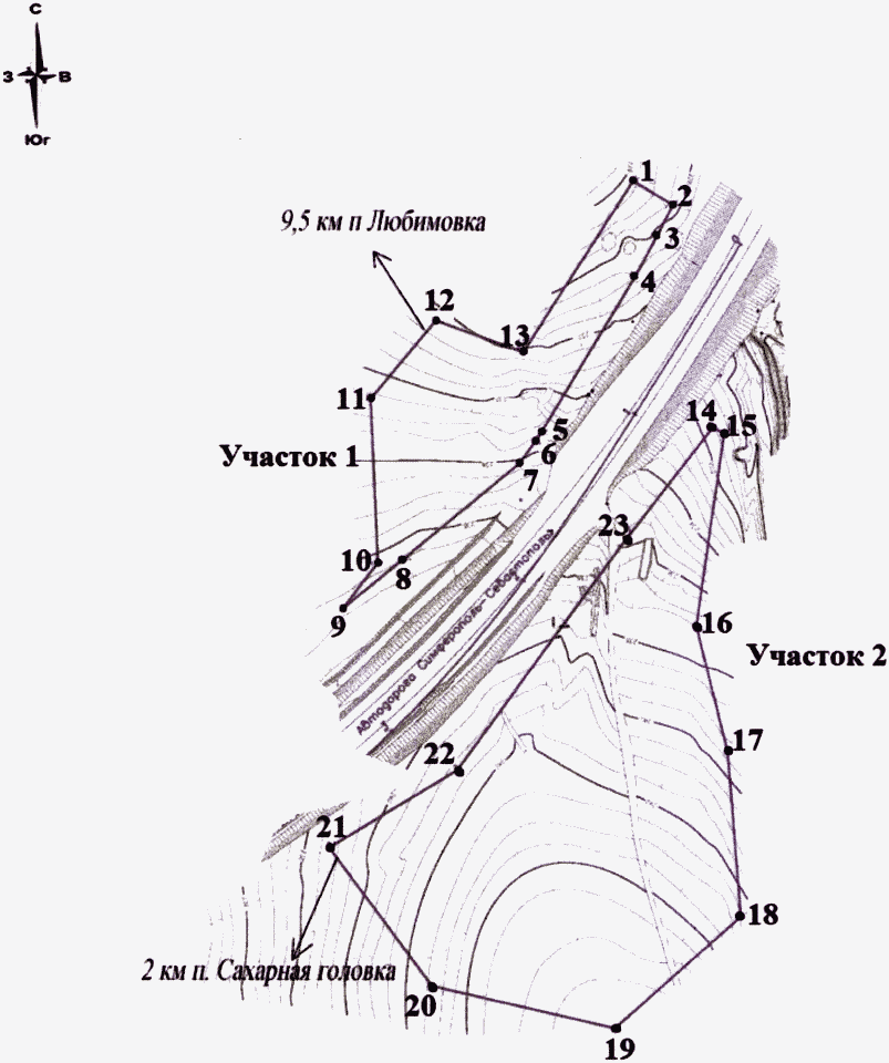 г. Севастополь, Нахимовский район, в 2 км к северо-востоку от п. Сахарная головка, к северу и югу от 271 км автомобильной дороги А-291 "Таврида" Керчь - Симферополь - Севастополь