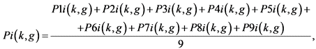 Pi(k,g) - значение показателя, характеризующего удовлетворенность граждан i-го субъекта Российской Федерации работой государственных и муниципальных организаций культуры, искусства и народного творчества по видам деятельности, по результатам k социологических опросов, проведенных в g-м году, процентов;