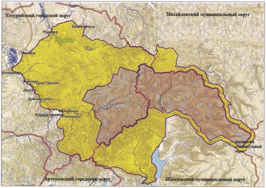 границы Уссурийского городского округа, Шкотовского муниципального округа, Артемовского городского округа, Михайловского муниципального округа, Анучинского муниципального округа;
