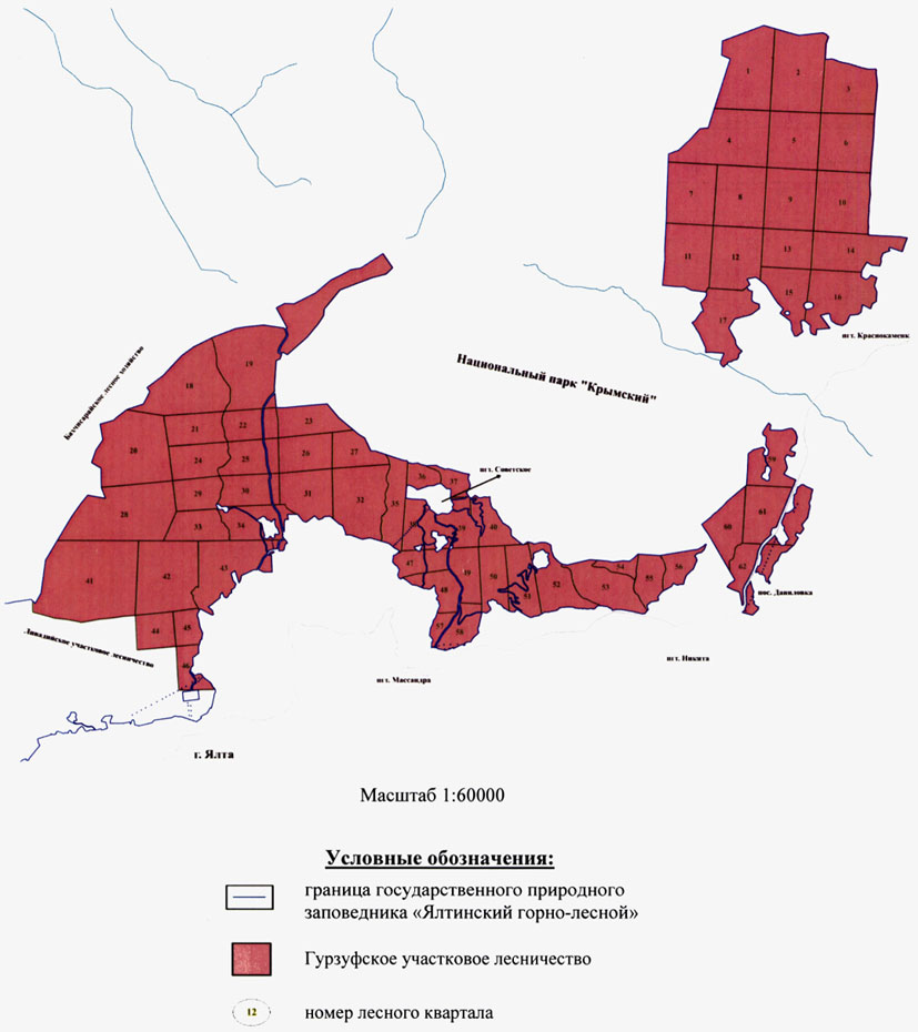 1) Гурзуфское (площадь 3951 гектар);