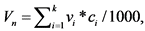 vi - объем производства по каждому виду продукции из редких и редкоземельных металлов (в натуральном выражении), определенный i-й компанией, представляющей информацию в Минпромторг России, в n-ом отчетном периоде, тонн.