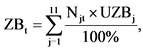 11. Численность занятых, которая сложилась бы при сохранении занятости на уровне значений базового года (ZBt), рассчитывается по следующей формуле: