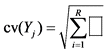 cv(Yj) - коэффициент вариации суммарного значения показателя по j-го вида экономической деятельности по Российской Федерации в целом;