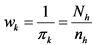 wk - выборочный вес единицы (k), который обратно пропорционален вероятности включения наблюдений в выборку;