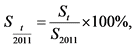 St - доля продукции высокотехнологичных и наукоемких отраслей в валовом внутреннем продукте за отчетный год t, %; <1>