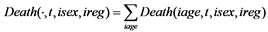 соответствовала общему числу умерших в населении, равному Death(·,t,isex,ireg)