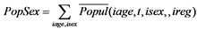t - год, для которого производится расчет, isex - пол, ireg - субъект.