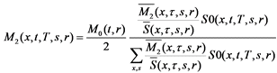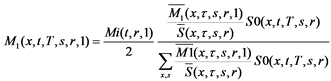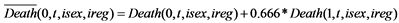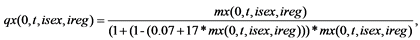 qx(1-4,t,isex,ireg) = 4 · mx(1-4,t,isex,ireg) / (1 + 2.4 · mx(1-4,t,isex,ireg)),