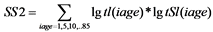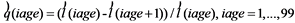 lgtl(iage) = ln((1 - l(iage)) / l(iage)), iage = 1, 5, 10, ..., 85.