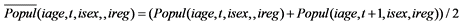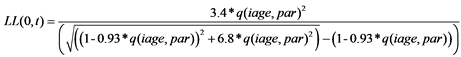 LL(iage,par) = (l(iage,par) + l(iage + 1,par)) / 2, iage = 1, ..., 99