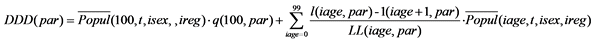 Если iA = 85+, то используется та же формула, но при этом если mx(iA,t,isex,ireg) < 0.294118, то он принимается равным 0.294118.