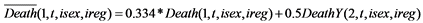 = (Death(·,t,isex,ireg) - DDD(par(n))) · (Death(·,t,isex,ireg) - DDD(par(n-1)))