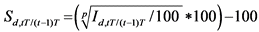 Sd,tT/(t-1)T - среднесуточный прирост цен на отчетную дату за период с начала месяца, процентных пунктов;