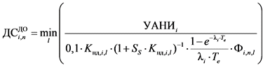 39. Для водного объекта, являющегося водоемом, площадь поверхности которого не превышает 400 км2, фактор разбавления i-го радионуклида при постоянном сбросе в равновесных условиях рассчитывается по формуле: