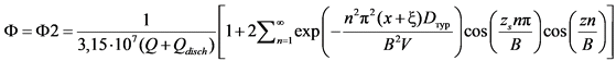 (где x - продольная координата вдоль по течению водотока с началом в точке сброса, м, а H - глубина водотока, соответствующая минимальному за последние 30 лет расходу воды в водотоке с учетом притоков, м), рассчитывается по формуле, не учитывающей разбавление сброса: