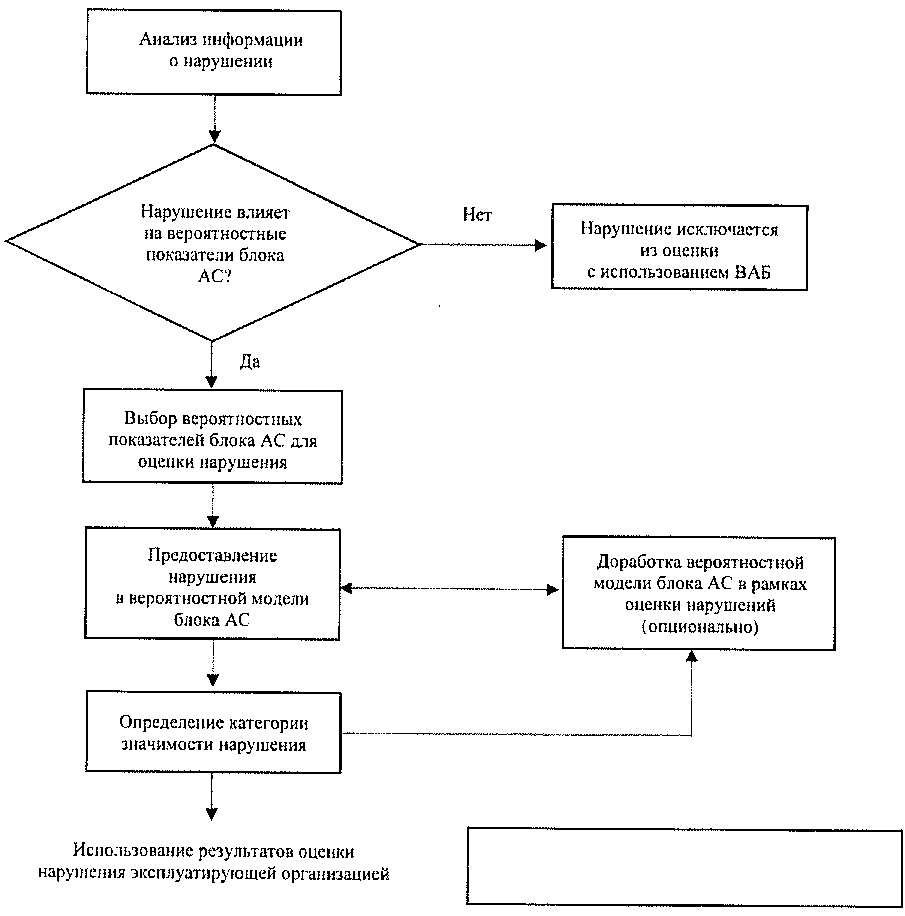 8. Результаты оценки нарушений могут быть использованы эксплуатирующими, конструкторскими и проектными организациями при корректировке вероятностной модели блока АС в рамках выполнения ВАБ блока АС, а также при выполнении анализа тенденции изменения ВПБ блока АС.