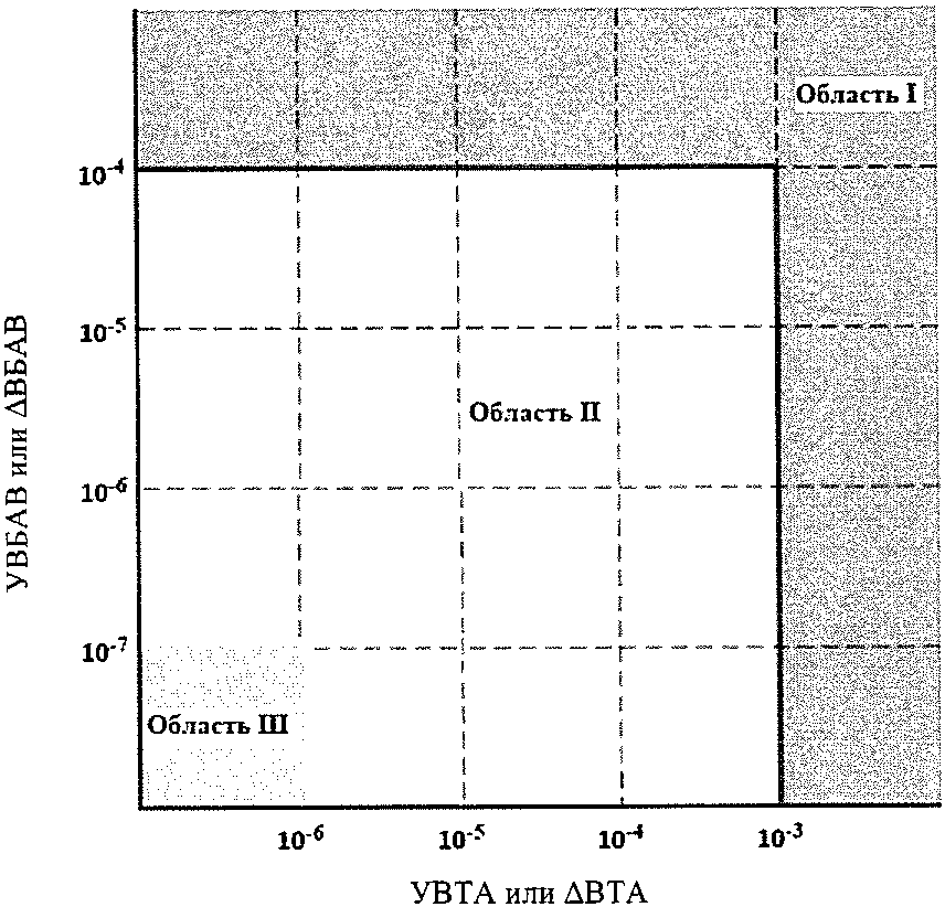 значения УВТА и УВБАВ попадают в область II диаграммы приложения N 4 к Руководству по безопасности ("среднезначимое нарушение");