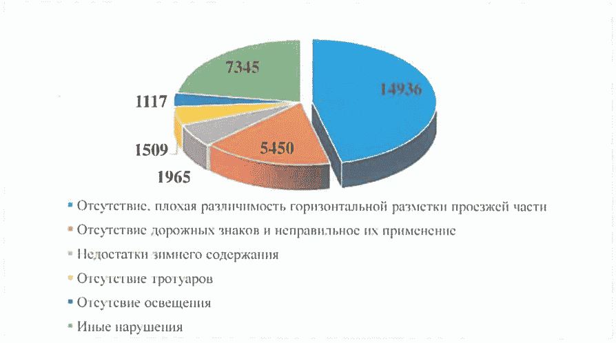 На месте совершения почти трети происшествий (22387,27%) зафиксировано 32322 нарушения обязательных требований при содержании и обустройстве дорог.