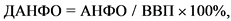 6. Доля активов небанковских финансовых организаций относительно валового внутреннего продукта (ДАНФО), процентов, рассчитывается по формуле: