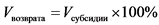 Получателем субсидии осуществляется возврат средств субсидии в бюджет, из которого предоставлена субсидия, в размере средств (Vвозврата), рассчитываемом по формуле: