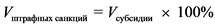 Получателем субсидии осуществляется уплата средств в бюджет, из которого предоставлена субсидия, в размере средств (Vштрафных санкций), рассчитываемом по формуле: