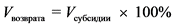 Получателем субсидии осуществляется возврат средств субсидий в бюджет, из которого предоставлена субсидия, в размере средств (Vвозврата), рассчитываемом по формуле: